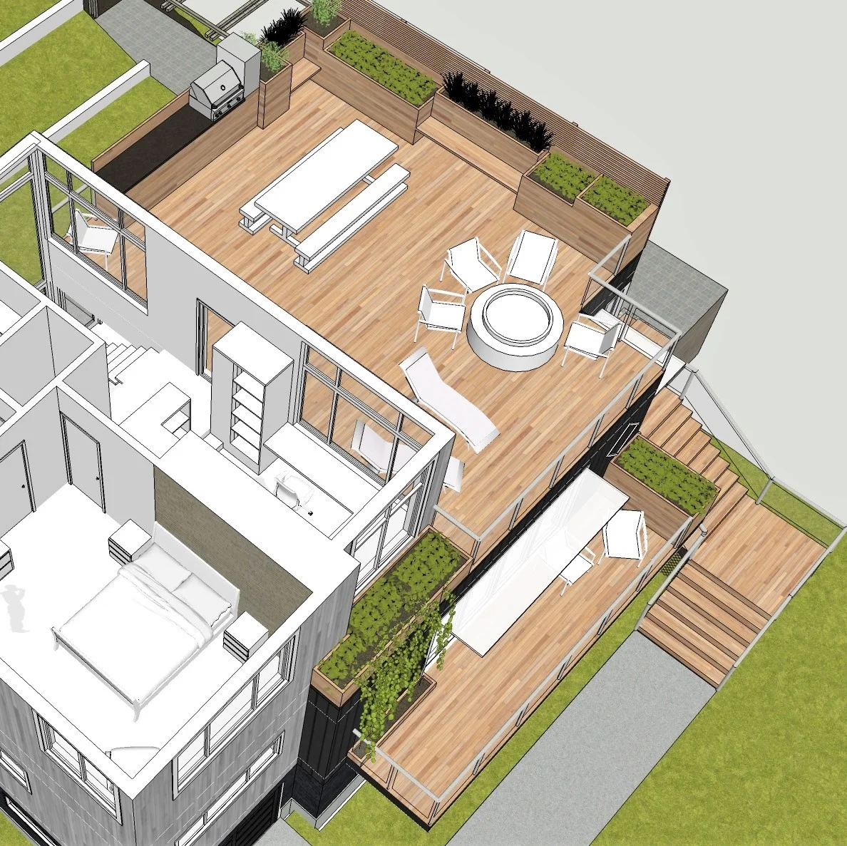 Extend living space with outdoor features like decks, patios or balconies can quickly connect the indoors and outdoors. To improve the outdoor connection of the View Ridge house, we added a balcony to the existing first floor and a roof deck on the additional second floor. Not only will these additional outdoor spaces provide extra areas for gathering and outdoor dining, but they will also provide the family an exclusive outdoor view of Mount Rainier.
